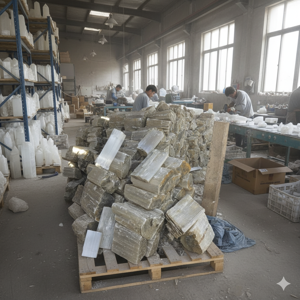 We source high-quality blocks of selenite, fossils, and onyx directly from Morocco.